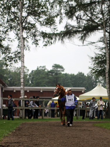厩舎から100mくらい歩いただけなのにもうヘトヘトな感じ