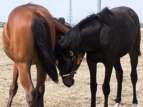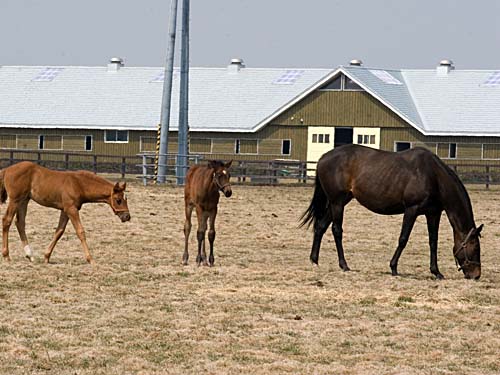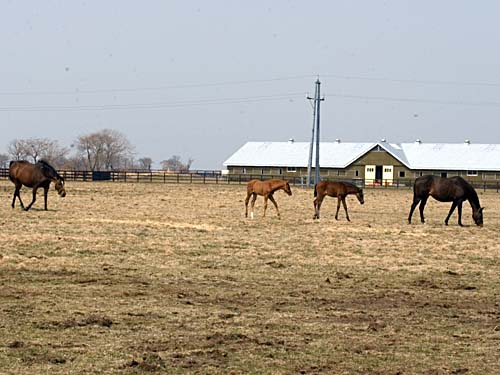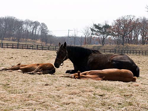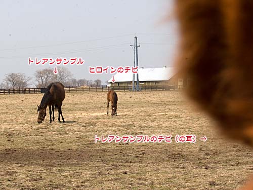奥の鹿毛がヒロインの子のはず。手前の栗毛は何者!?