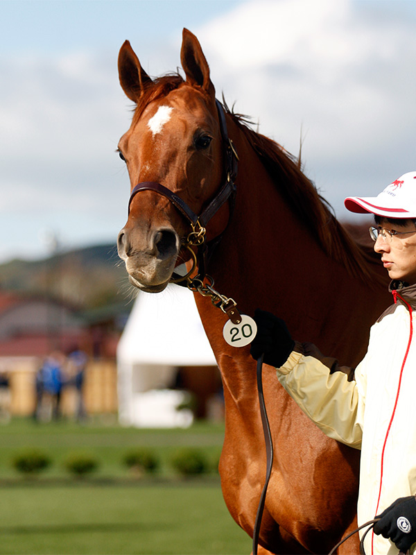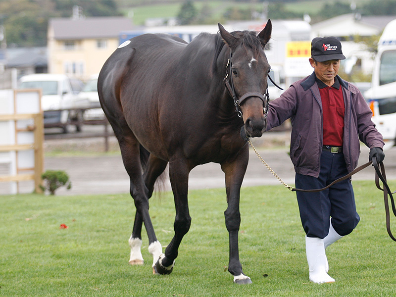 この日上場されたもう1頭の一族馬は、白老の習志野牧場さんで繁殖生活を送る