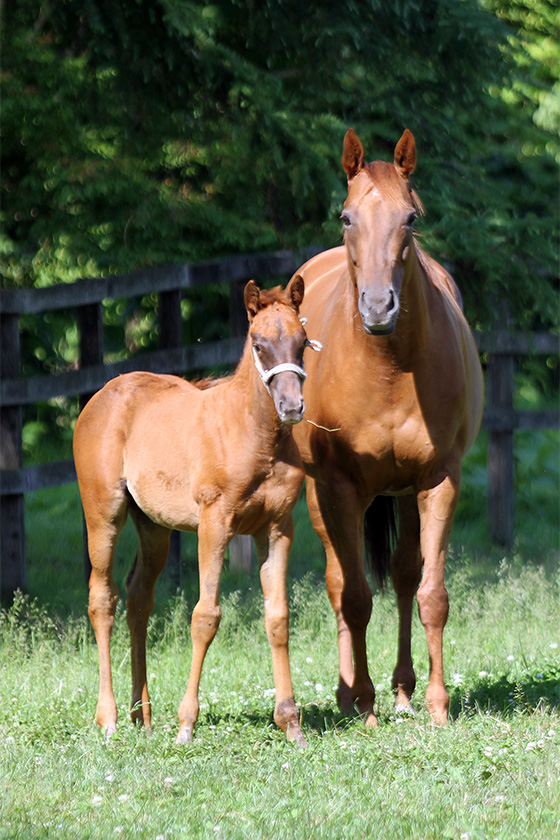 赤っぽい毛色はエレガントの母トゥランと同じ。